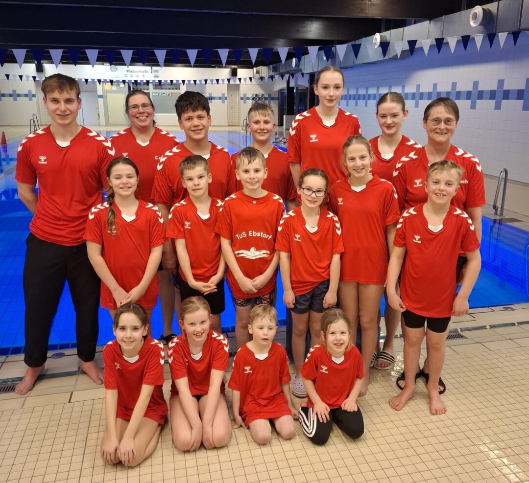 Die Schwimmer des TuS Ebstorf haben kurz vor Weihnachten ein Sponsoren-Schwimmen veranstaltet und dabei pro Schwimmer pro geschwommener Bahn Spendengelder erhalten. Jetzt sind dafür erst einmal neue Vereins-T-Shirts angeschafft worden: