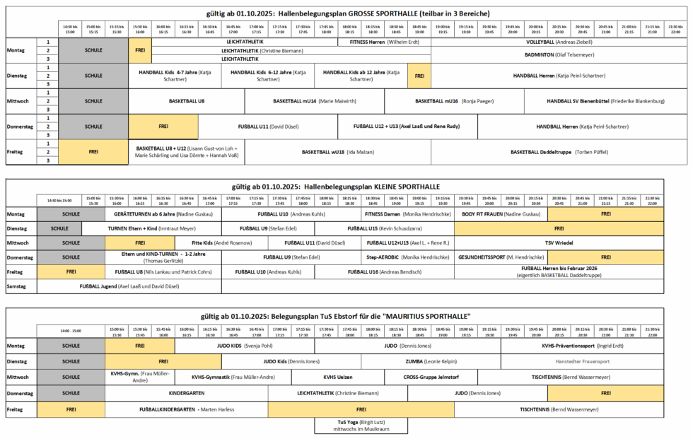 Oktober 2025 | Große Sporthalle | Große Sporthalle | Kleine Sporthalle | Kleine Sporthalle | |