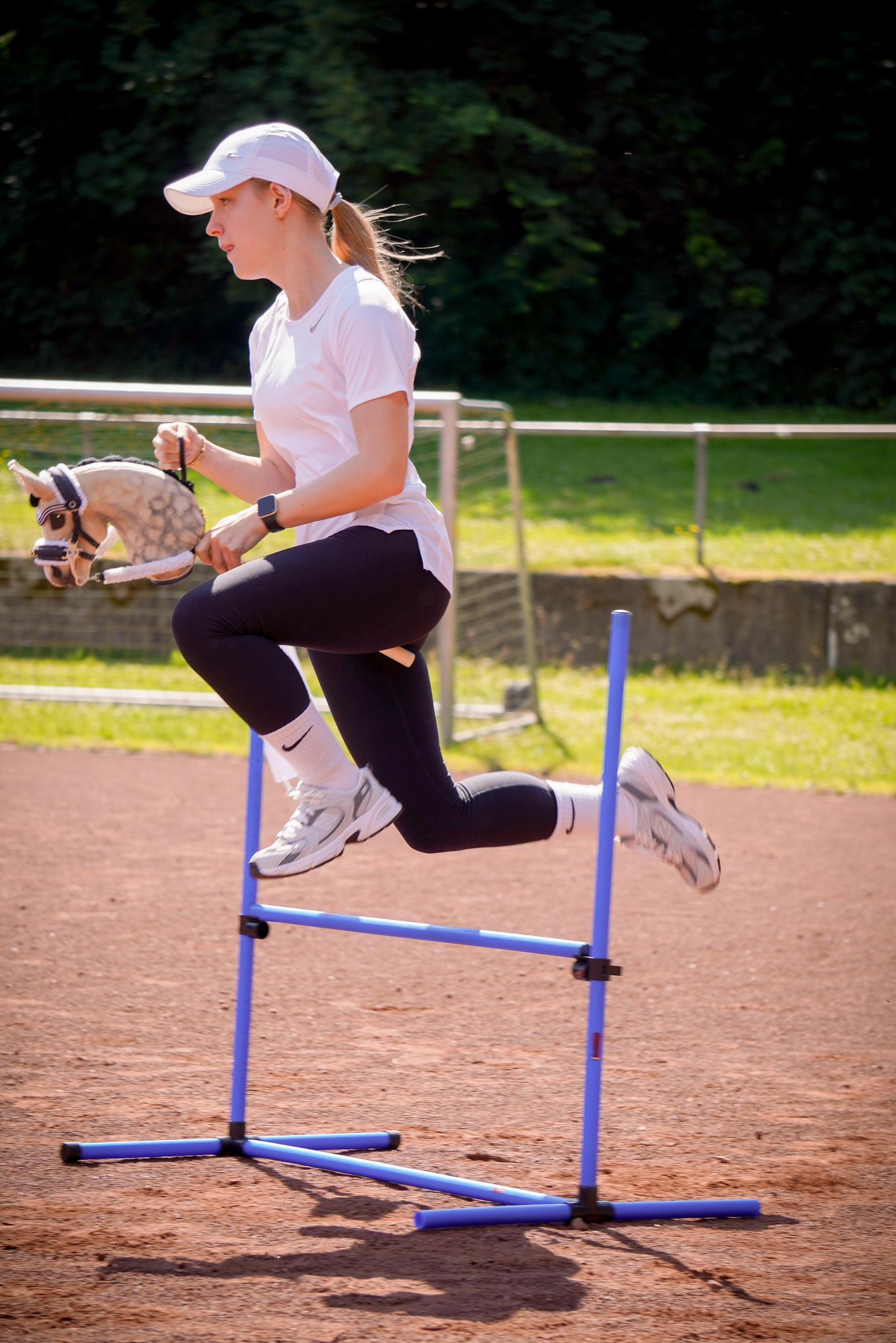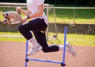 Ich bin Nia Knopp und aktiv in diesem Sport seit 2018. Seither verfolge ich die Entwicklung stetig und freue mich sehr, diesen Sport auch bei uns anbieten zu dürfen. Mich findet man regelmäßig auf Wettkämpfen, wo ich bis in die hohen Prüfungen erfolgreich bin. In meiner Freizeit stelle ich zudem Equipment für Hobby Horses her.